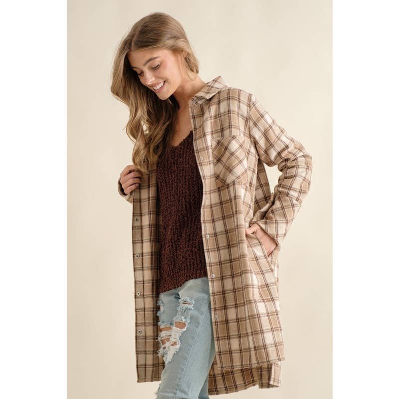 Plaid button down oversize jacket - 1 chest pockets - Side pockets on either side - Plaid fabric - Model is 5' 8" 34-24-34 and wearing a Small